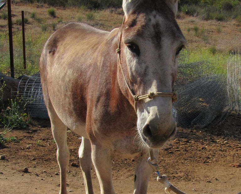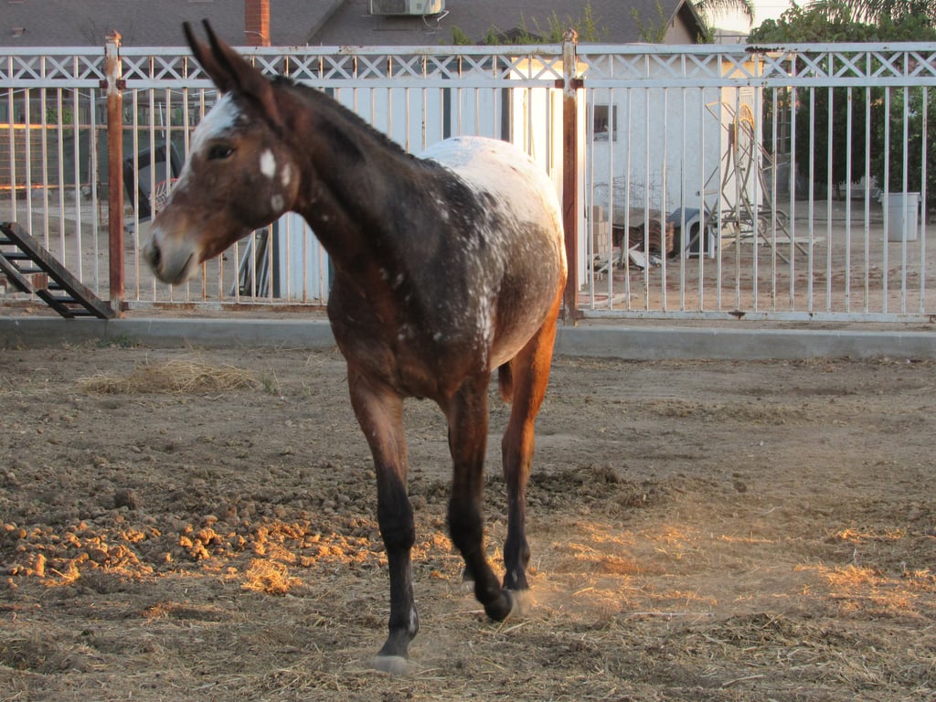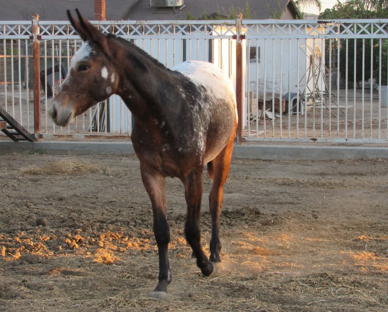 Rossi the Appaloosa Mule with a spotted coat