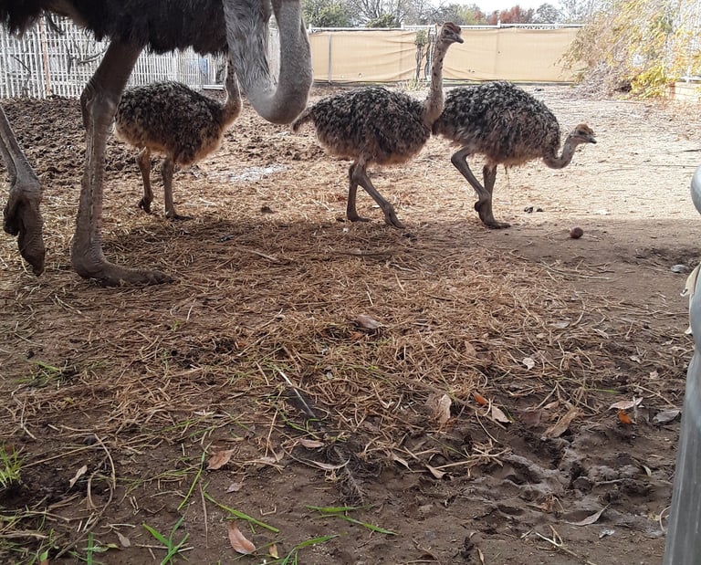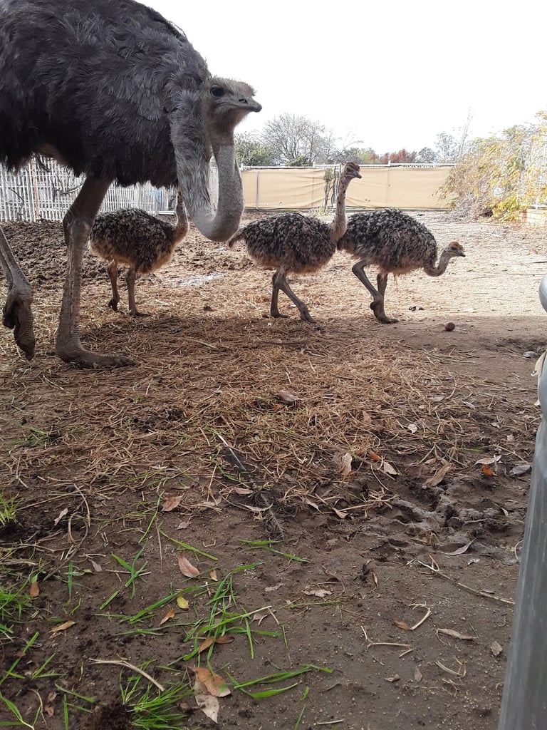 Lucy the Ostrich walking with her chicks