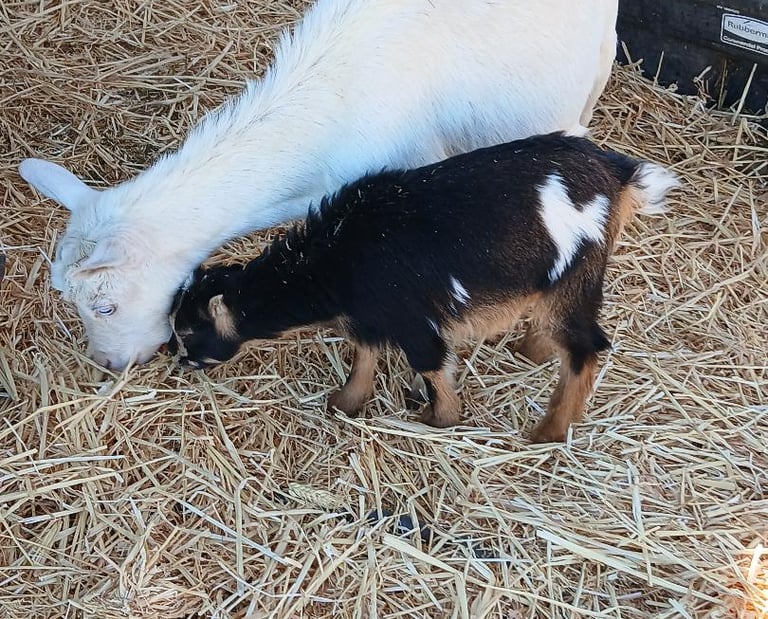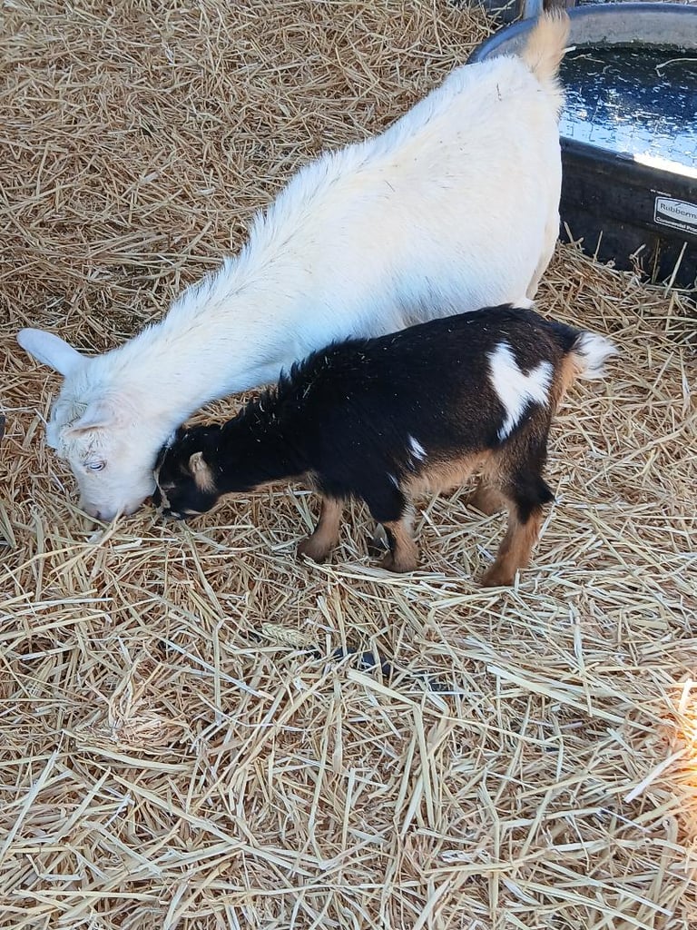Trixie the Nigerian Dwarf Goat with her kid