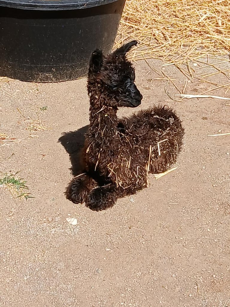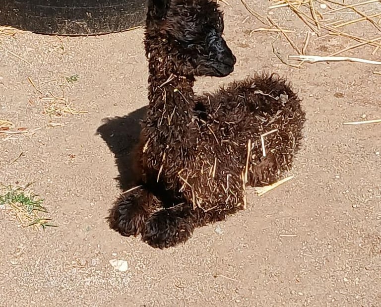 Guacamole the Suri Alpaca with long wavy fleece